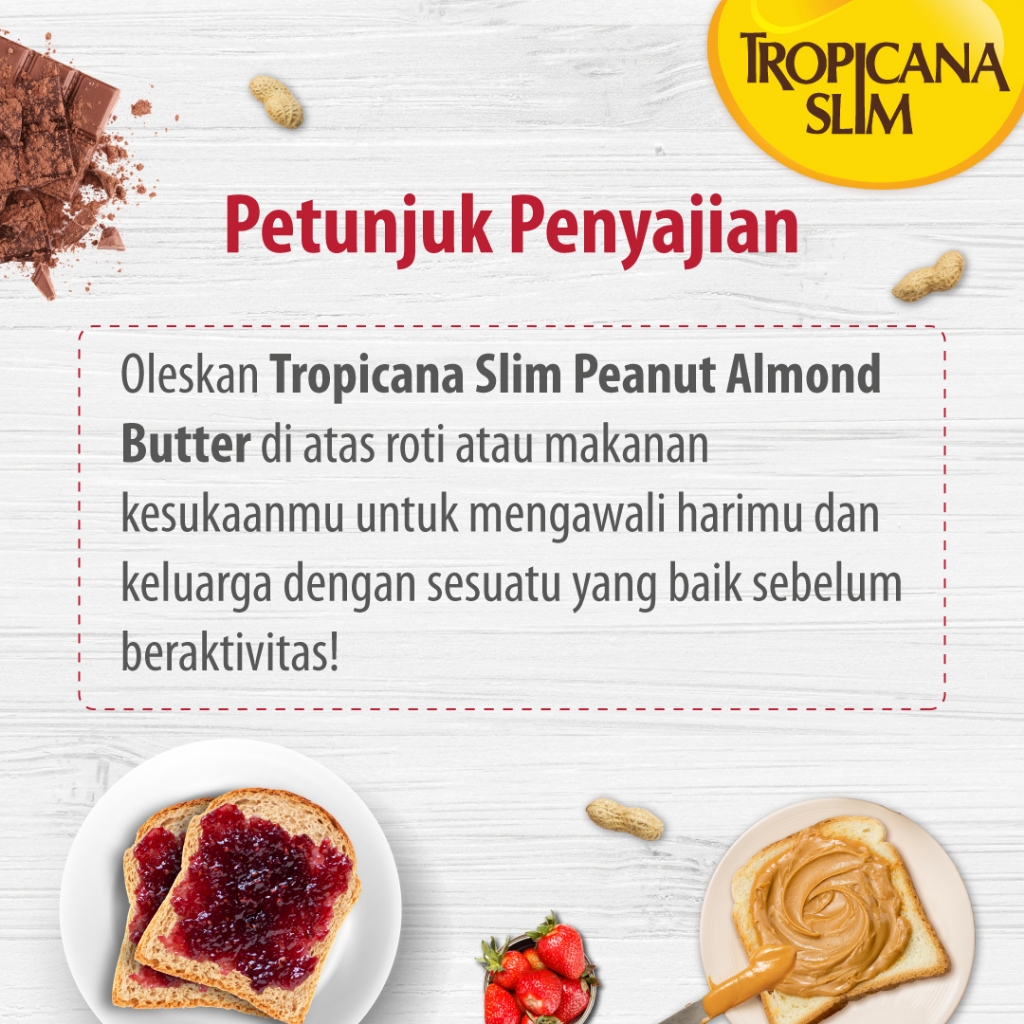 TROPICANA SLIM PEANUT ALMOND BUTTER SPREAD JAM 300 GRAM SELAI KACANG ALMOND NIKMAT TANPA GULA PASIR