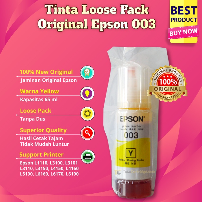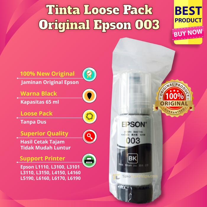 Tinta Epson Original 003 C13T00V Refill Botol Printer Epson L1110 L1210 L1250 L3100 L3101 L3110 L3116 L3150 L3156 L3210 L3250 L3256 L5190 L5290 L5290 65ml