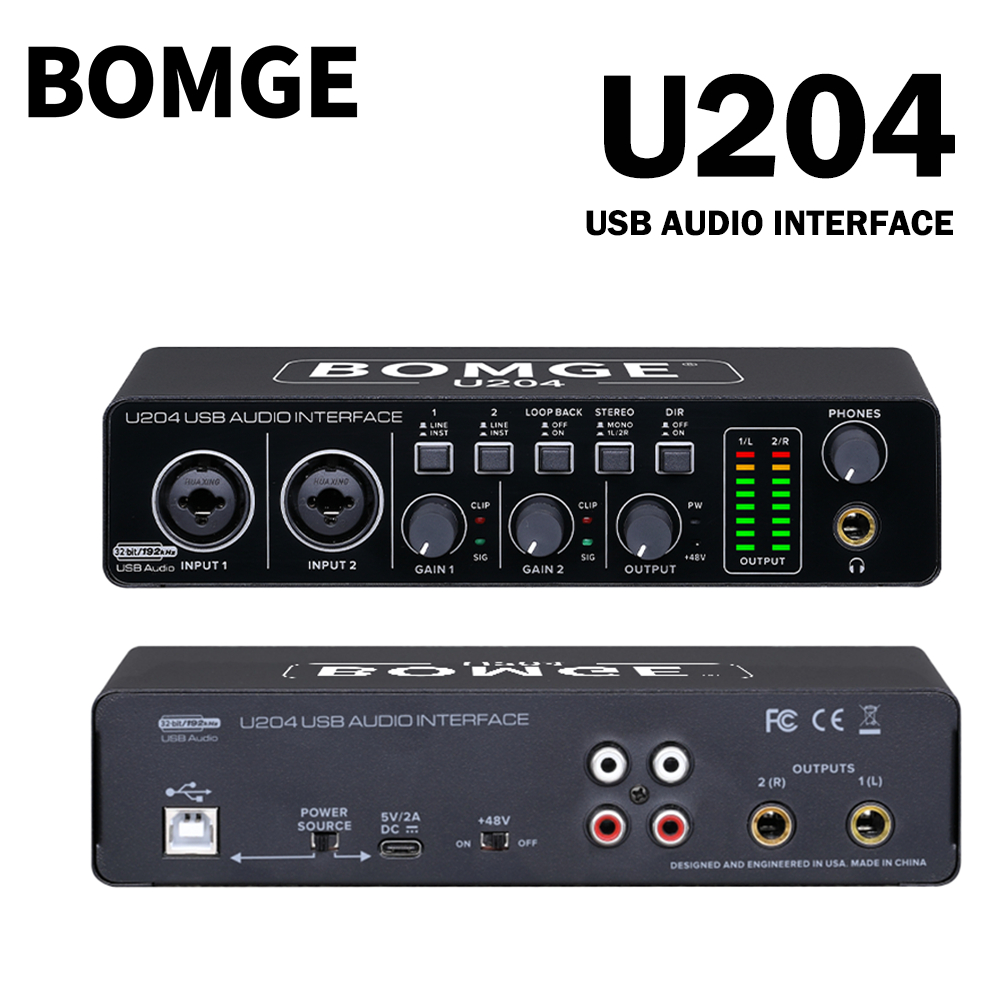 BOMGE U204 USB Audio Interface Performance Mixer & Recording Interface Mic Preamplifier XLR/TSR/TS Ports, Compatible for