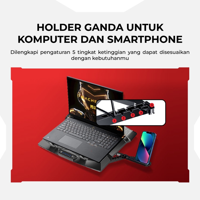 GAMEN GCP100 Laptop Cooling Pad Gaming – Kipas 8 Core, Super Silent Mode, Adjustable Stand, Pendingin Laptop Efektif unt