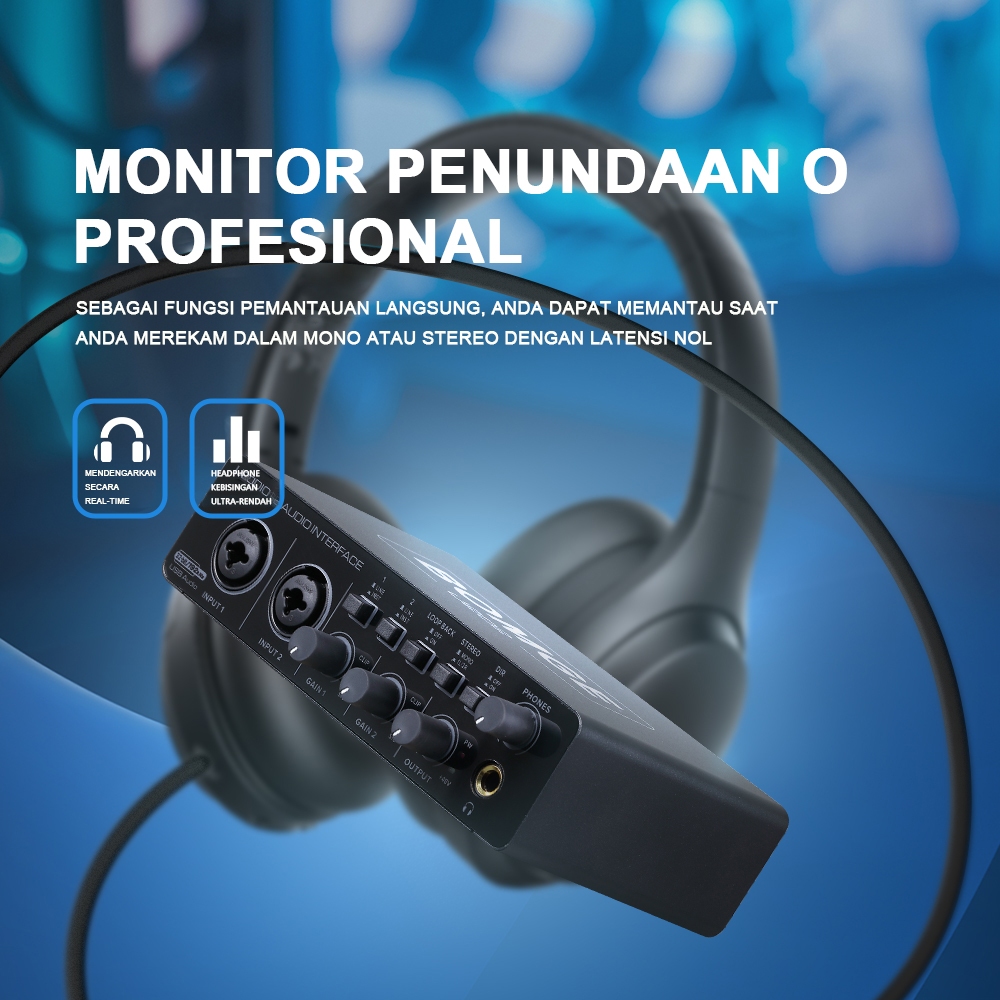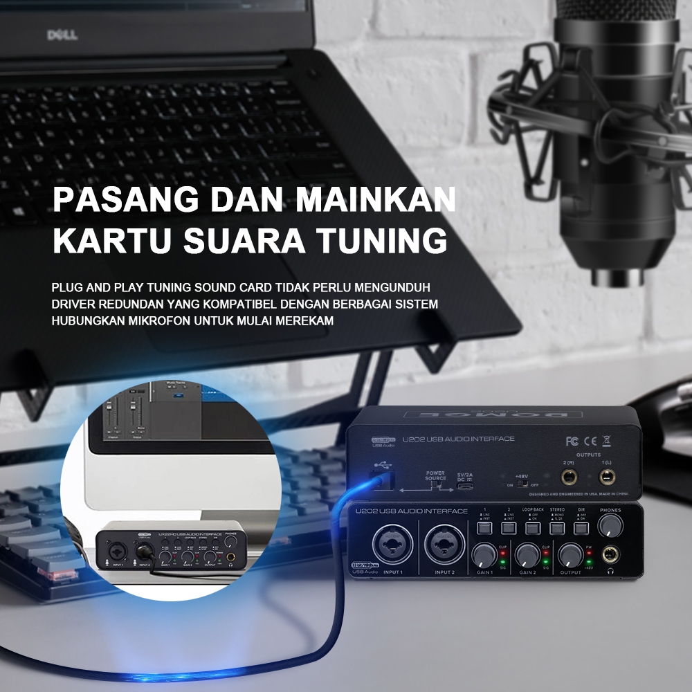 BOMGE U202P USB Audio Interface - Soundcard Studio 32Bit/192kHz 2 Channel Mic Preamp 48V Phantom Power for PC Laptop Sma