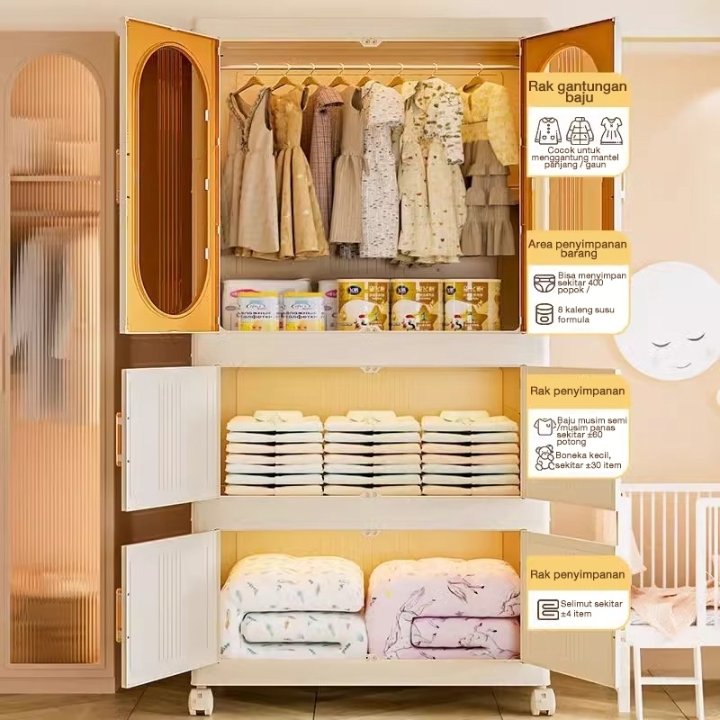 SALVO Lemari Plastik Jumbo Serbaguna untuk Baju Bayi dan Pakaian Gantung/Lemari pakaian besar lipat