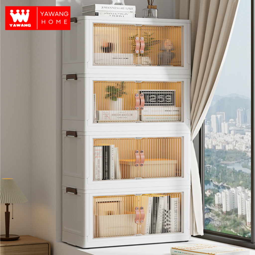 YAWANG Home Lemari Pakaian Plastik 51CM Berkapasitas Kecil Transparan 1 2 3 4 5 Susun Lemari Lipat Portable Lemari Sepat