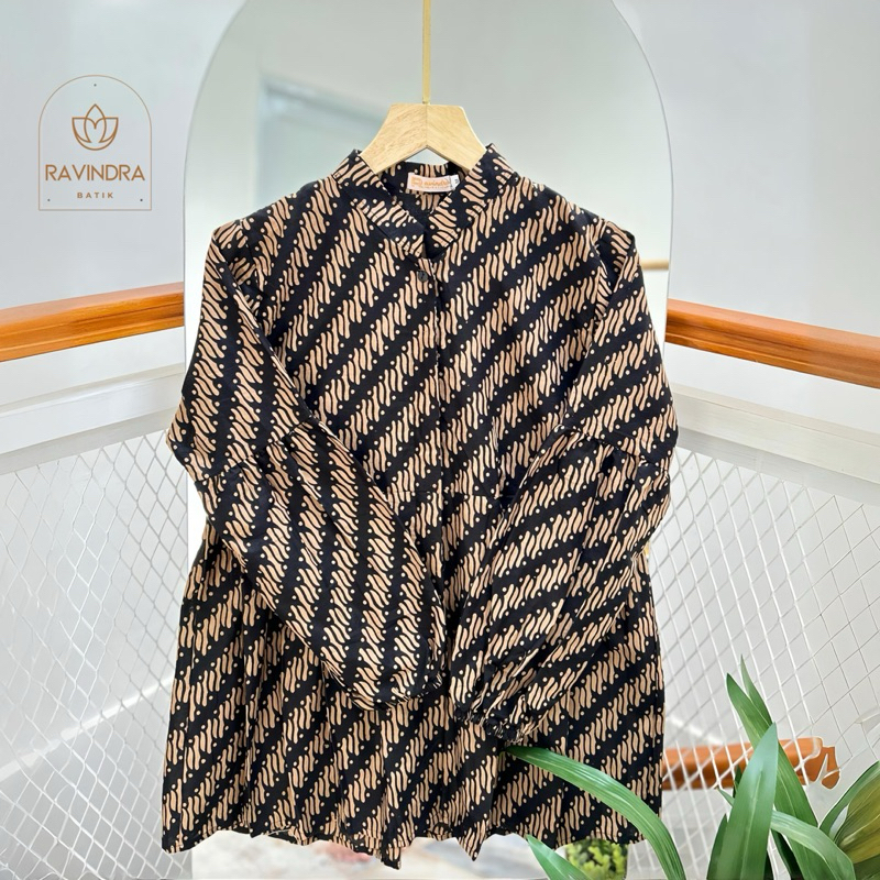 BATIK RAVINDRA Blouse Sogan Coklat Kancing Depan