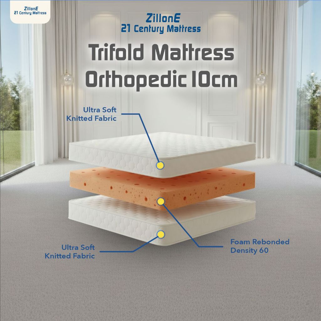 Zillone Trifold Orthopedic Mattress 90x200x10 - 120x200x10cm
