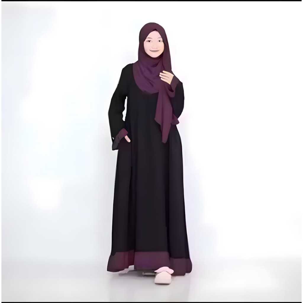 Gamis Abaya Hitam Anak Perempuan 11 12 13 14 15 16 17 Tahun Liyana Syar'i Set Pashmina Bahan Ceruty Babydoll Full Furing
