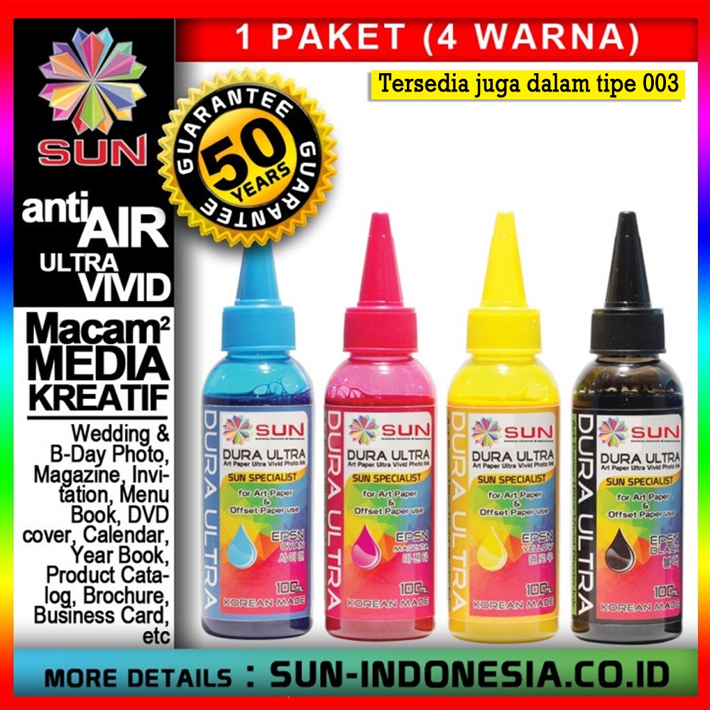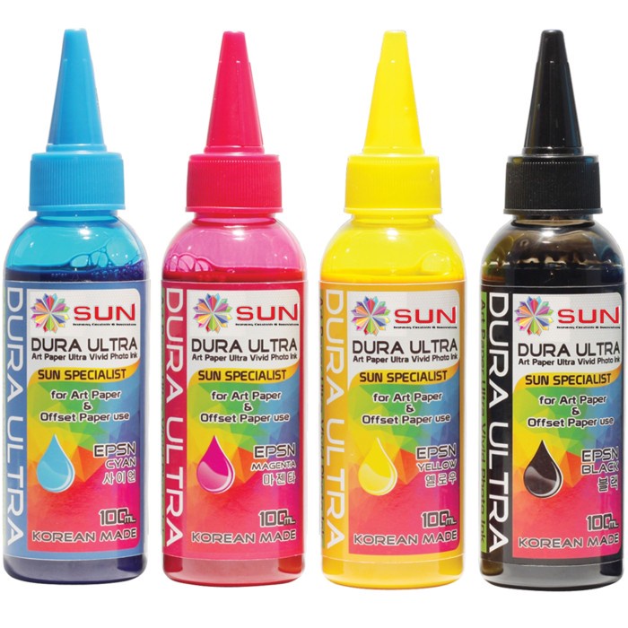 Tinta Epson 003 / 057 / 664 / 673 Art Paper Ultra Vivid Photo Korea Terbaik - SUN DURA ULTRA INK 100 ml (1 Set 4 Warna / 6 Warna)