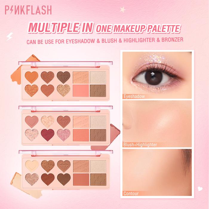[Official] PINKFLASH OhMyLove 4 IN 1 Multiple eyeshadow Blush HighlighterTahan air Palet Wajah palette eye - M02#01