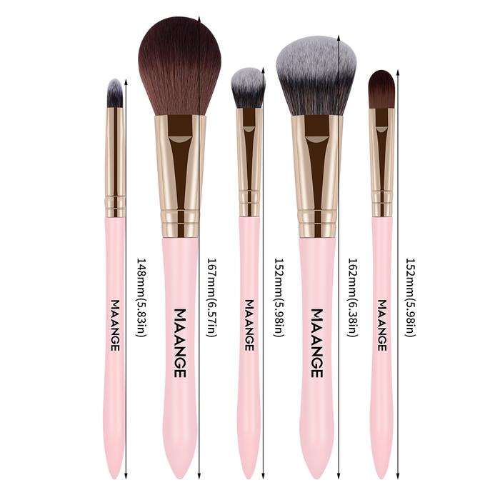MAANGE 5 Pcs Makeup Brush Set Premium Kuas Bedak Blush Eyeshadow Brush Kit 52184 - Pink