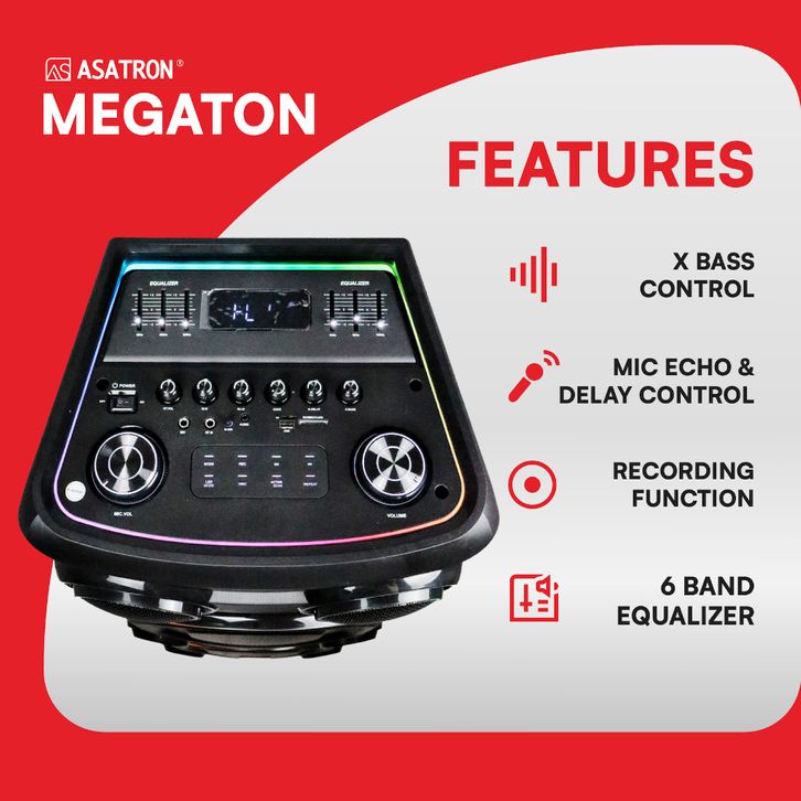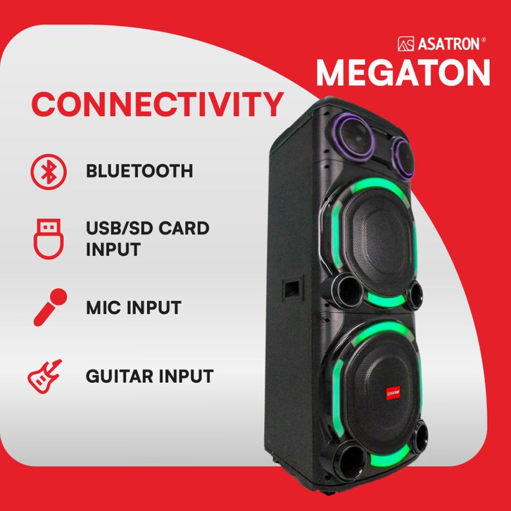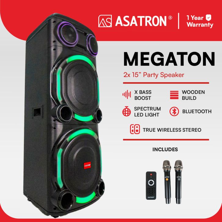 Asatron Megaton Dual 15 Inch Bluetooth Party Speaker with 2 Wireless Mic