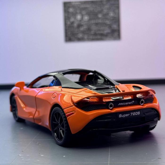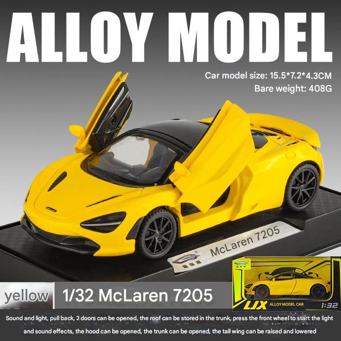 (R335) Diecast Alloy Mclaren 720s Convertible Version Scala 1:32 Light Sound & Pullback Akrilik Box - Kuning