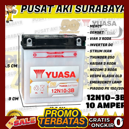 aki ORIGINAL YUASA 12N10 ACCU 12N10 3B 12V 10AMPER THUNDER VIAR KAISAR GENSET VESPA 12 VOLT 10 AH