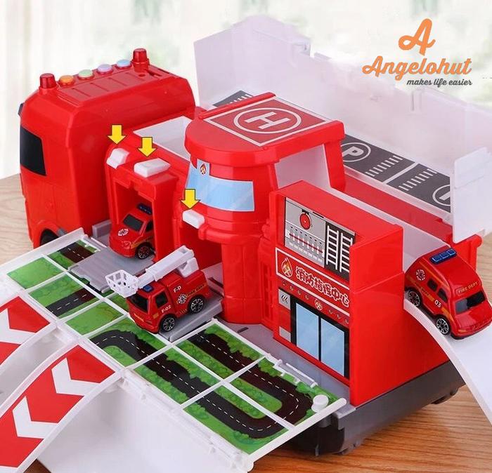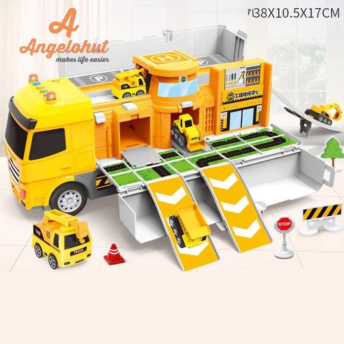 Angelohut Mainan Anak Mobil Truck Kontainer isi 4 dengan Musik Lampu dan Lagu Kids Control Remote
