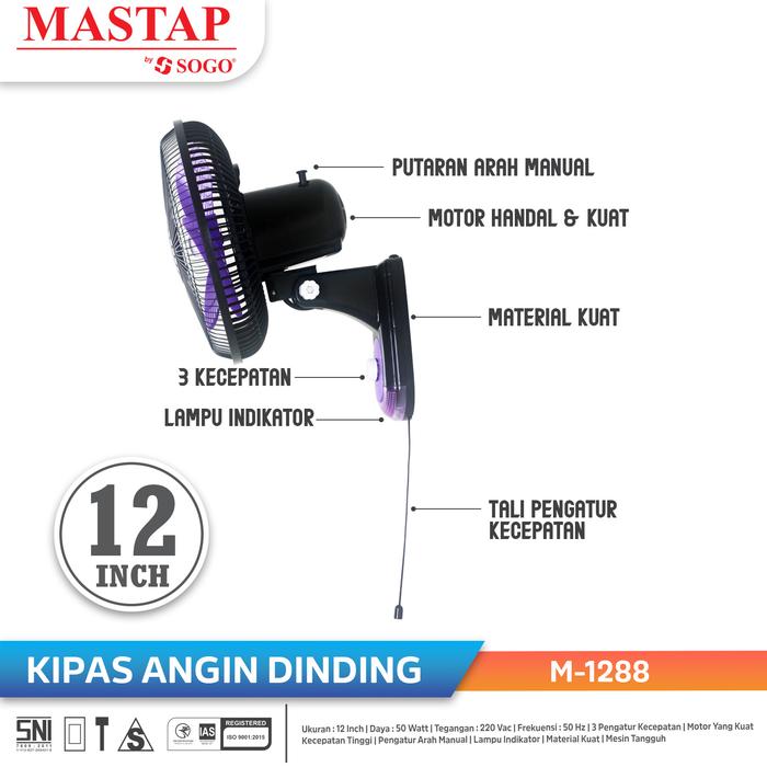 MASTAP Kipas Angin Dinding 12 Inch" M-1288 dengan Tali Pengatur Kecepatan Mesin Baling