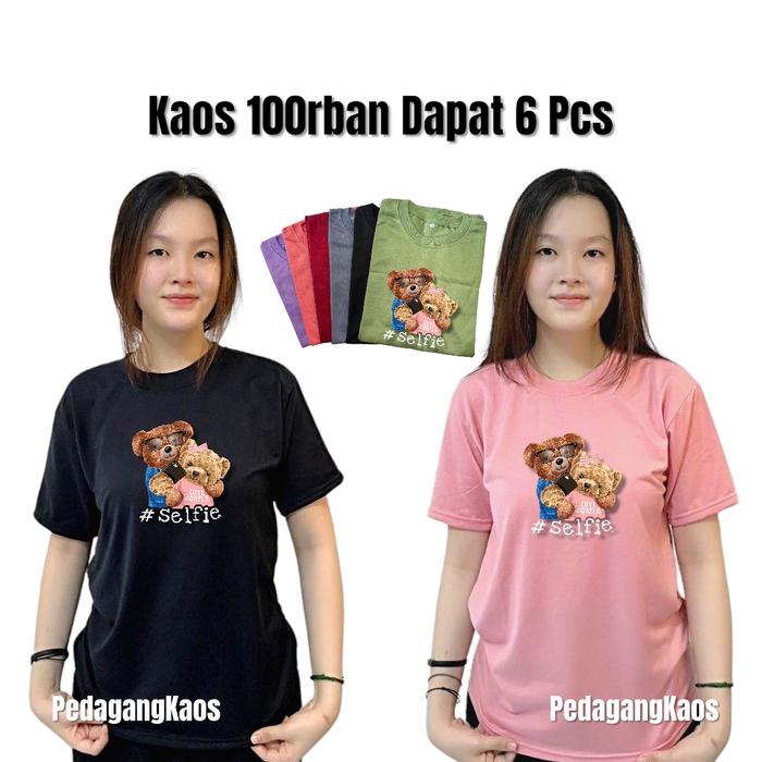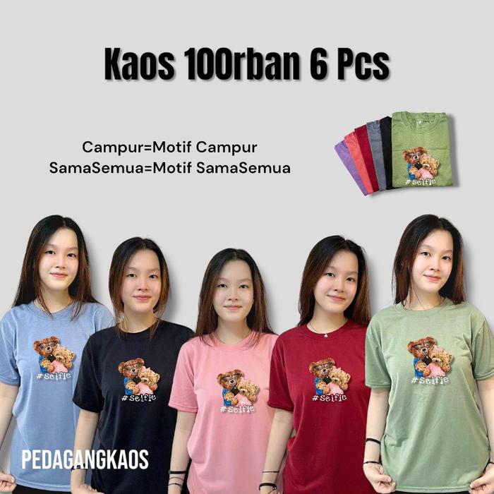 100rban Dapat 6 Pcs Kaos Wanita Motif Selfie Lengan Pendek Bahan Babyterry Slim-fitting - M 6Pcs Gambar Campur Campur