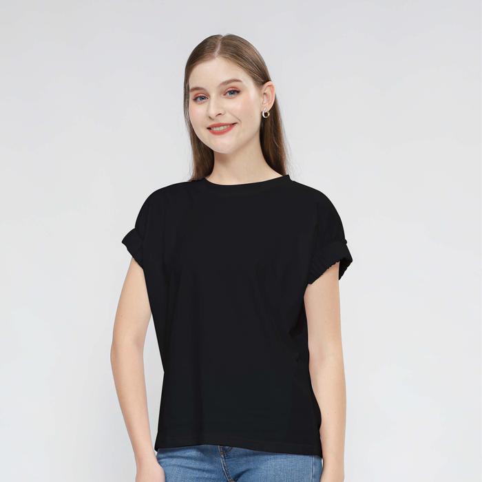 LESHA - Kaos Wanita Lengan Pendek Kerut Tisya Katun - Black