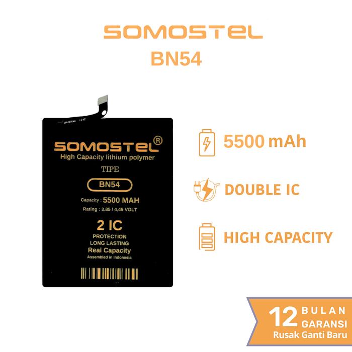 Somostel - BN54 Compatible With Redmi Note 9 / Redmi 9 Batre Batrai Baterai - smsbn54