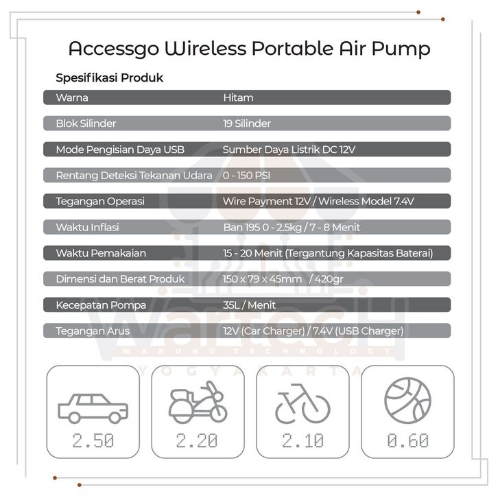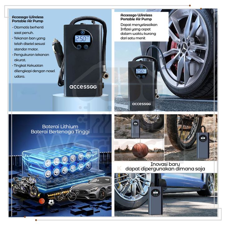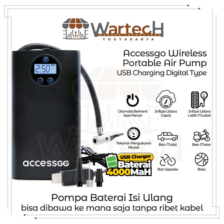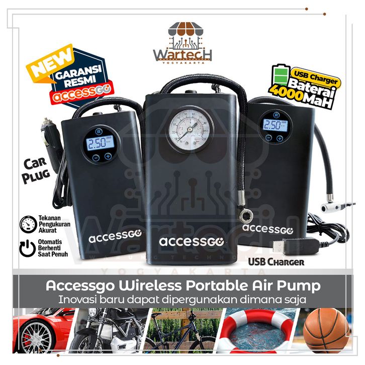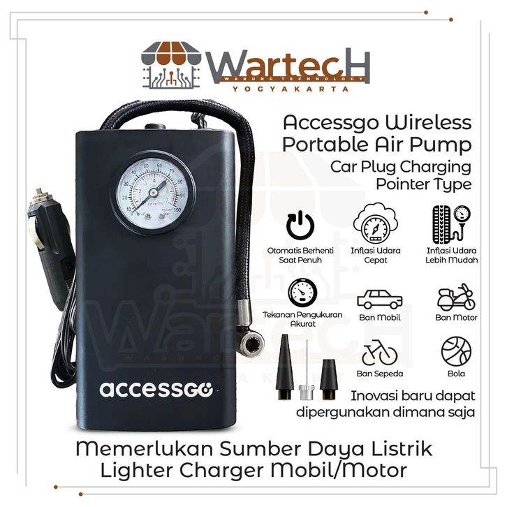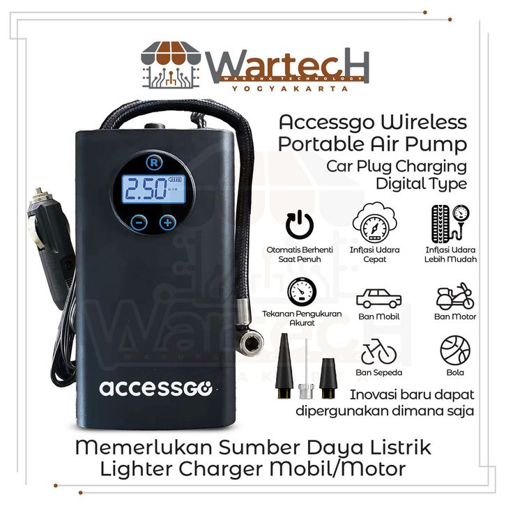 BERGARANSI Pompa Ban Elektrik Udara Portable Air Pump, Automatic Stop & Bisa Cek Tekanan Angin - WarungTechno
