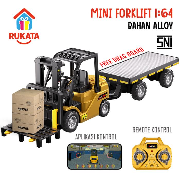 RC Mini Forklift Remote Kontrol 1:64 USB Charging Aplikasi Kontrol Bahan Metal Alloy