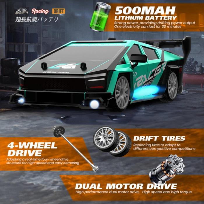 RC Drift Propo Skala 1/24 4WD 2.4Ghz Lampu LED Dual Motor Baterai Cas