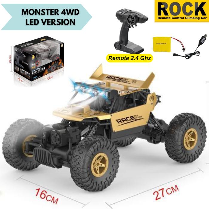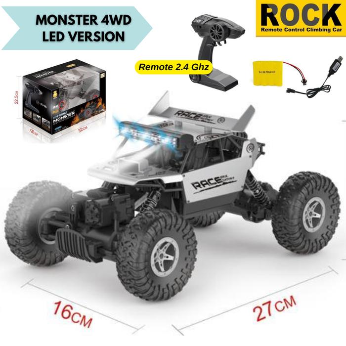 Mobil Remot Control Rock Crawler 4WD + Lampu LED Bodi Metal Mainan RC Remote Kontrol