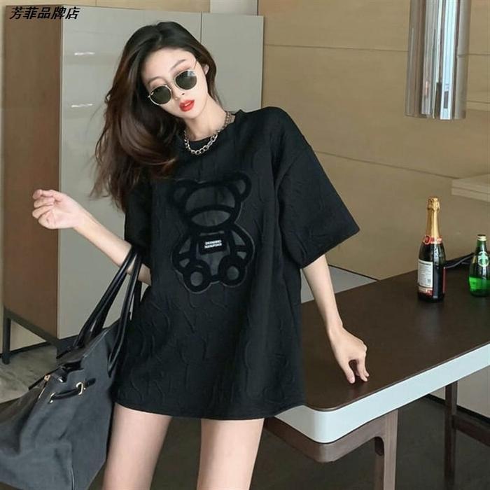 Kaos Longgar Oversize Tee Tshirt Wanita Model Longgar Besar Motif Bear Kain tebal - Import Panjang Putih Atasan - ABU