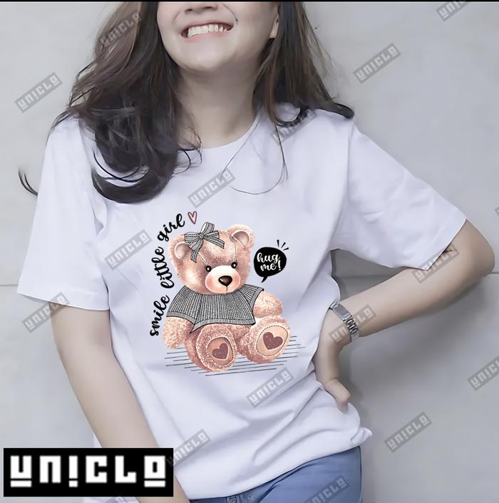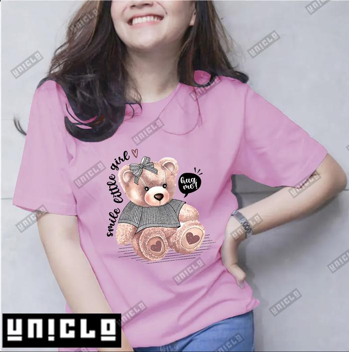 KAOS TEDDY BEAR WANITA COTTON COMBED 24s LENGAN PENDEK/PRINTED CUTIE - Abu Tua M