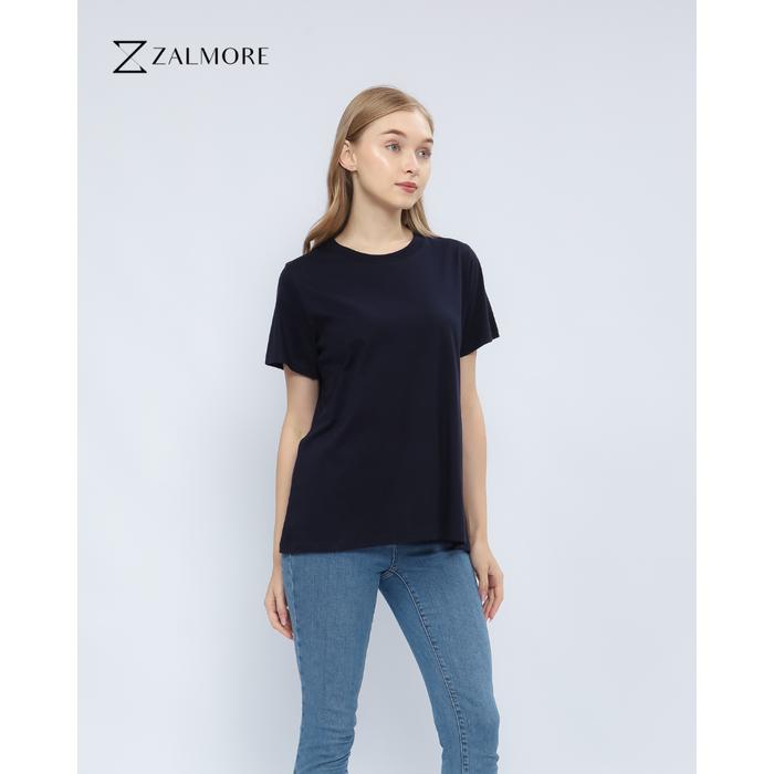 Zalmore Women Oneck Basic T-Shirt Premium LUMA Cotton - Kaos Wanita Slim Fit Lembut Anti Nerawang [Part II] - Navy S