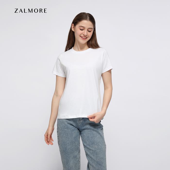 Zalmore Women Oneck T-Shirt Basic Premium LUMA Cotton - Kaos Wanita Lembut Ringan Sejuk Anti Nerawang - White S