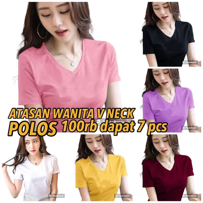 ATASAN WANITA POLOS LEHER V-NECK 7 pcs 100rb Kaos lengan pendek Baju - Warna rendom M