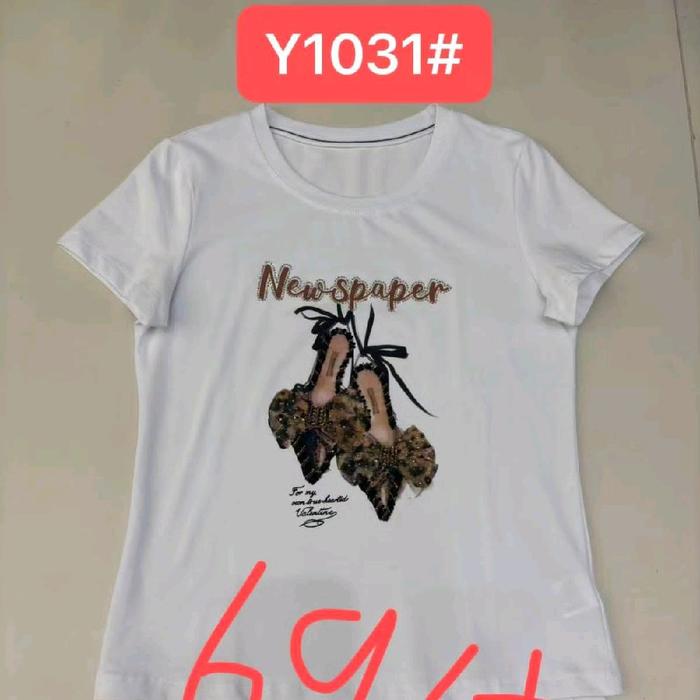 Kamaya Kaos Wanita Lengan Pendek Import Premium - Heels Newspa Putih XL LD94