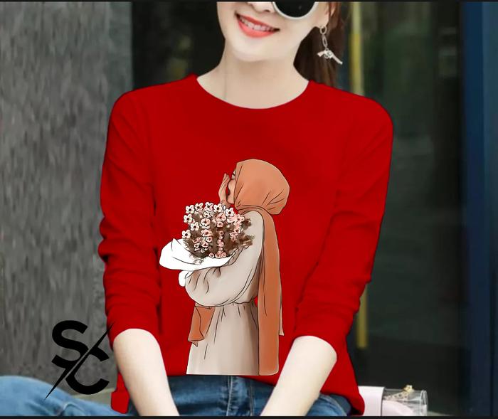 HJB #28 = KAOS WANITA LENGAN PANJANG COMBED 24s BASIC T-SHIRT TERBARU - MERAH M