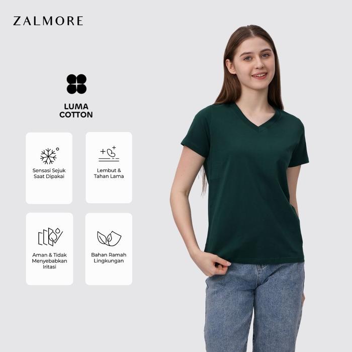 Zalmore Women Vneck Basic Series T-Shirt Premium LUMA Cotton - Kaos Wanita Lembut Ringan Sejuk Anti Nerawang - Black S