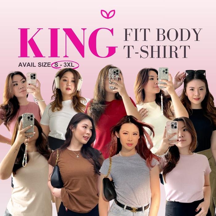 Pluffyschoice King Basic Fitbody Tshirt Kaos Polos Fitbody Baju Atasan Wanita Top Crop Pendek Tee - BLACK S