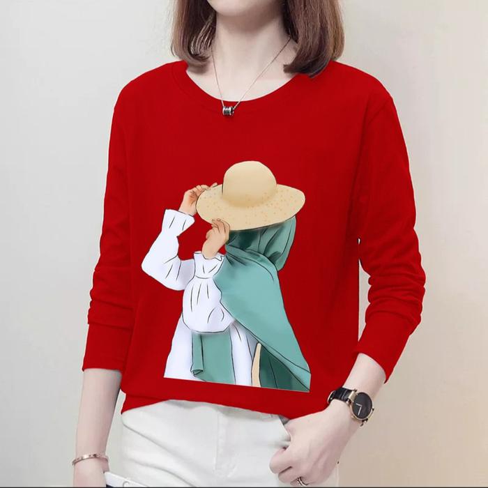 HJB #29 = KAOS WANITA LENGAN PANJANG COMBED 24s BASIC T-SHIRT TERBARU - MERAH M