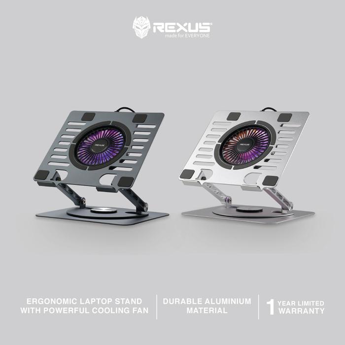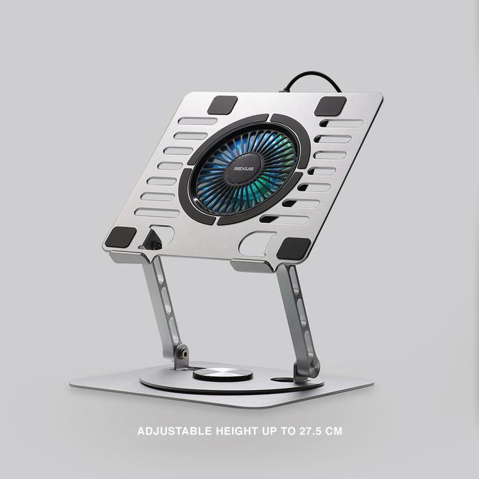 Rexus Decha Frost FP04: Stand Laptop RGB Alumunium Portabel Kipas Kuat Rotasi 360° Desain Stylish dan Ergonomis - Grey