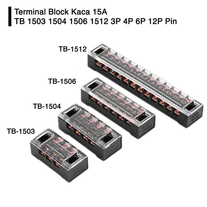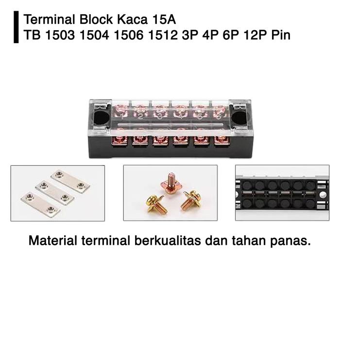 10 PCS - Terminal Block Block Kaca 15A TB 1503 1504 1506 1512 3P 4P 6P 12P Pin