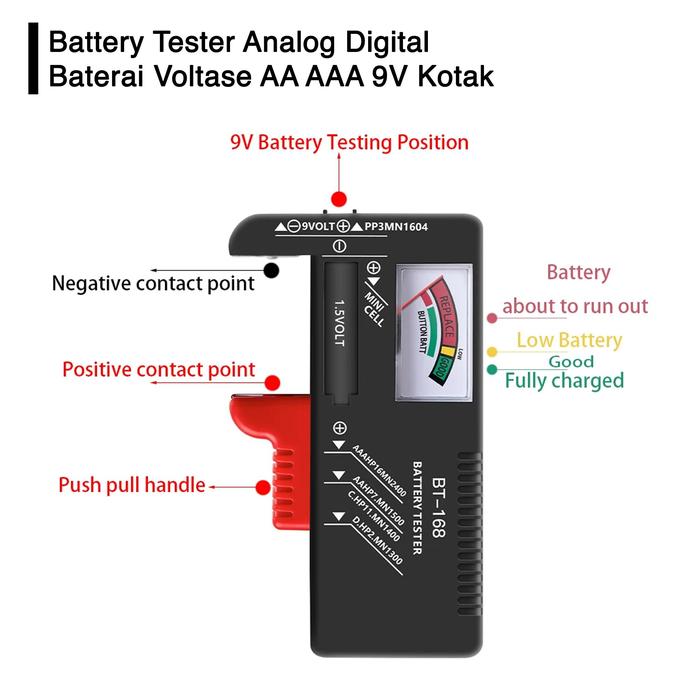 Battery Tester Alat Tes Cek Batu Batre Baterai Voltase AA AAA 9V Kotak