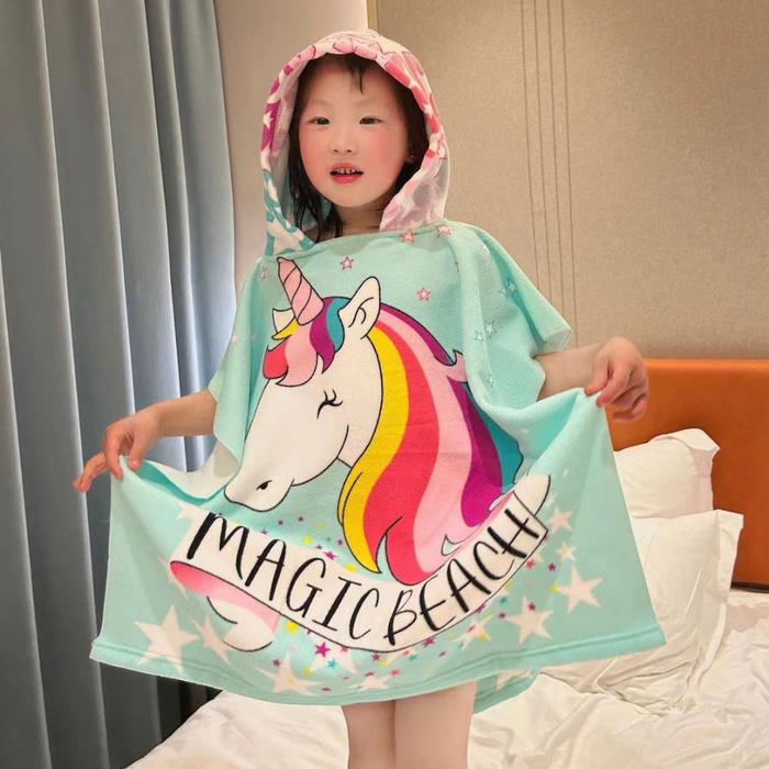 US204 Handuk Ponco Anak 60x120cm Karakter/Handuk Anak/Hoodie Towel - 2#Unicorn Tosca