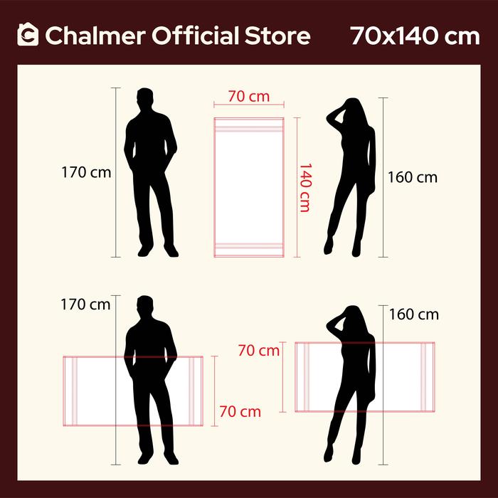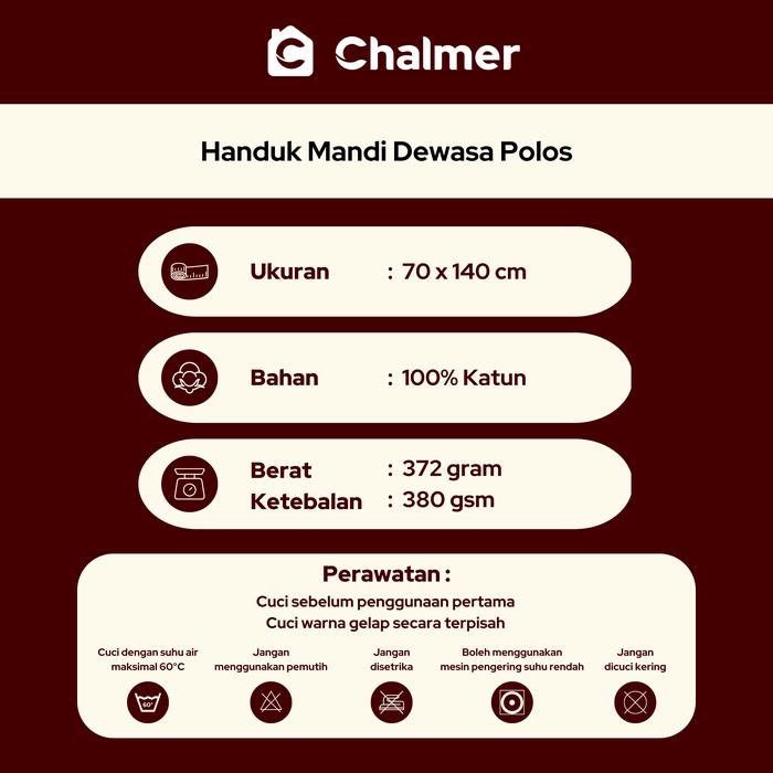 Chalmer Handuk Mandi Dewasa Bahan Kain Terry 70x140 cm Ukuran Besar Nyerap Air Maksimal - Putih