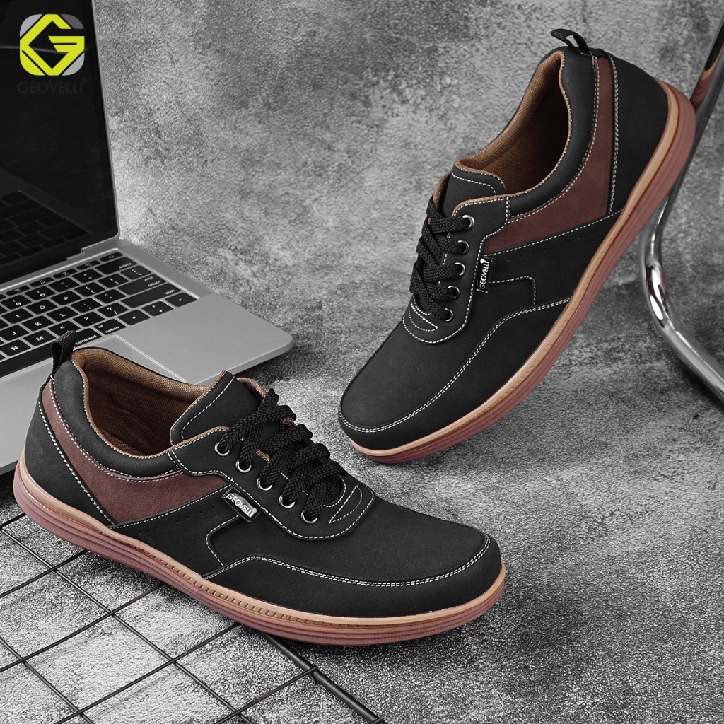 GVL Geovelli - Sepatu Sneakers Pria Hitam Kasual Sepatu Pria Kerja Sepatu Kasual Pria