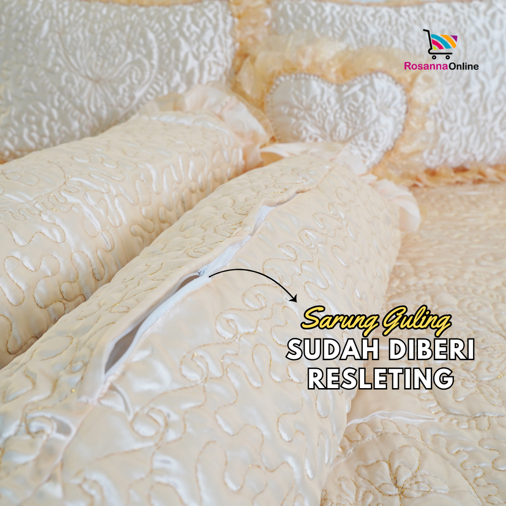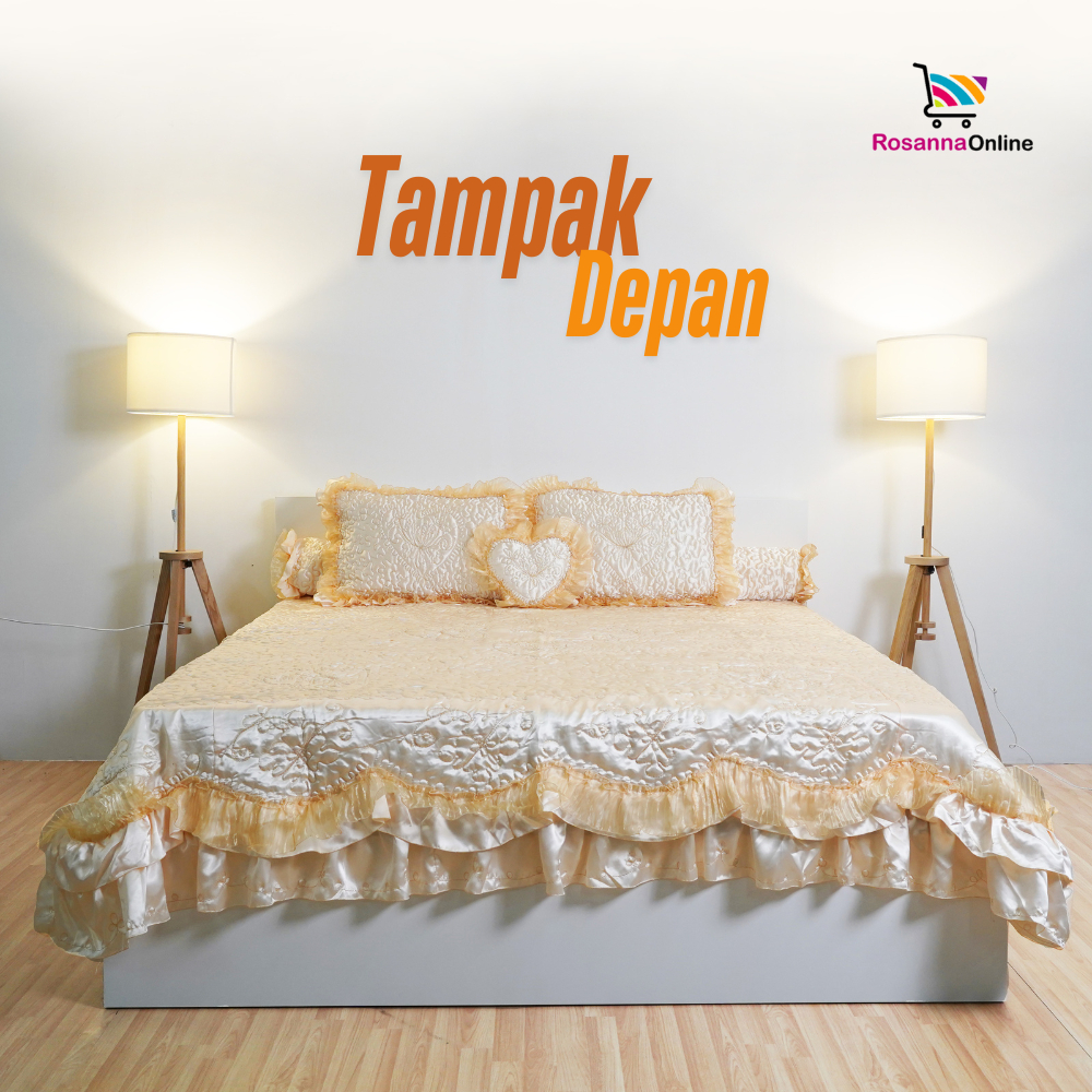 Rosanna - Sprei Pengantin Rumbai 1 Hati Blue Broken White Cream Gold Green Maroon Peach Pink