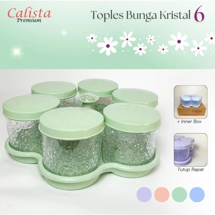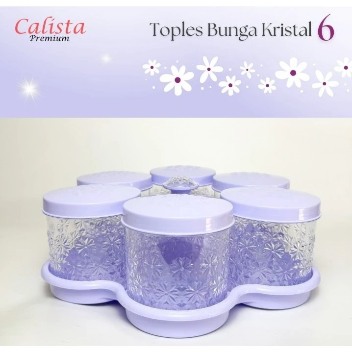 TOREDO M4 Calista Toples Kristal Enam Bunga Calista Toples Bunga Kristal 6 Toples Kue Kering Lebaran