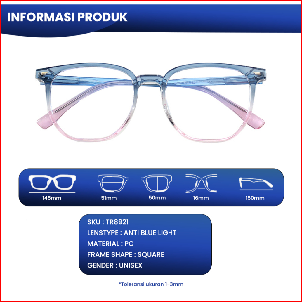 Iooi Kacamata Kotak Fashion Pria Wanita Photocromic Bisa Minus Anti Radiasi Blueray Terbaru Tr8921