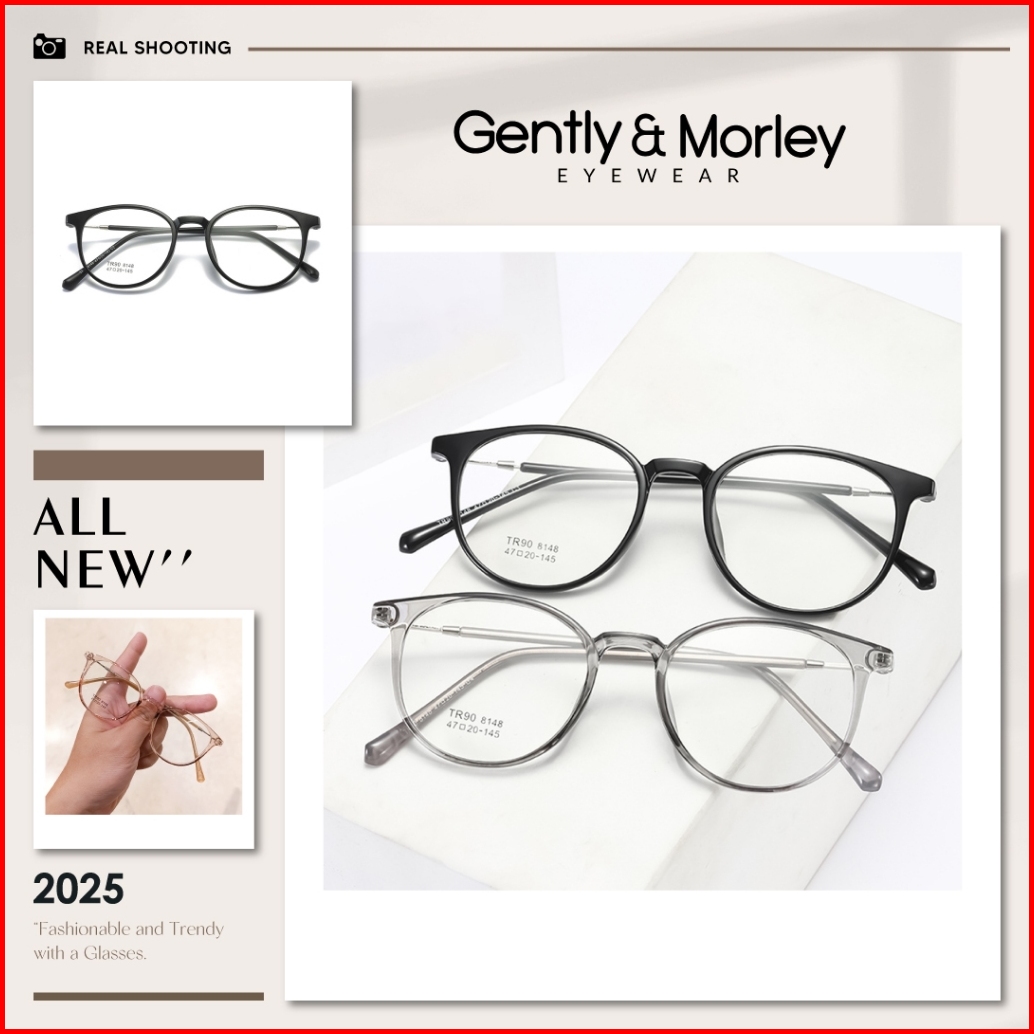 Gently Morley Kacamata Fashion Anti Radiasi Blueray Photocromic Minus Bulat Tr-90 Metal Pria Wanita 8148