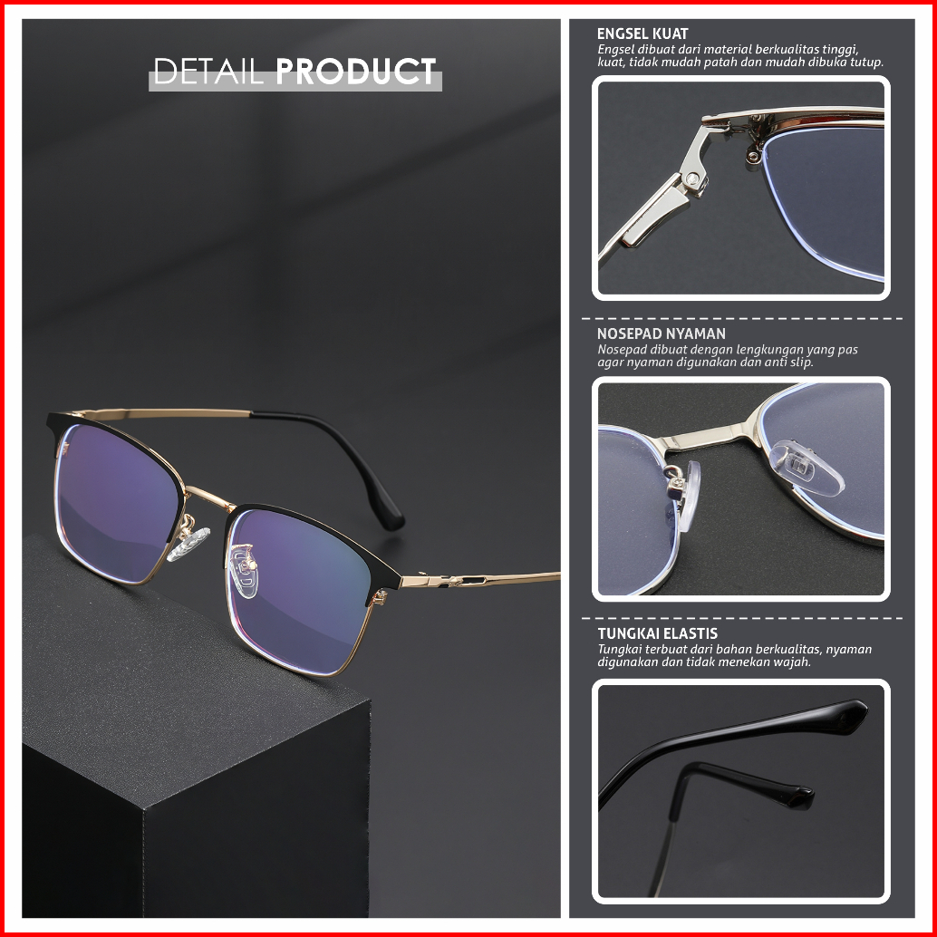 Gently Morley Kacamata Anti Blueray Minus Lensa Anti Radiasi Photocromic Bluecromic Fashion Pria Wanita Model Square Mat