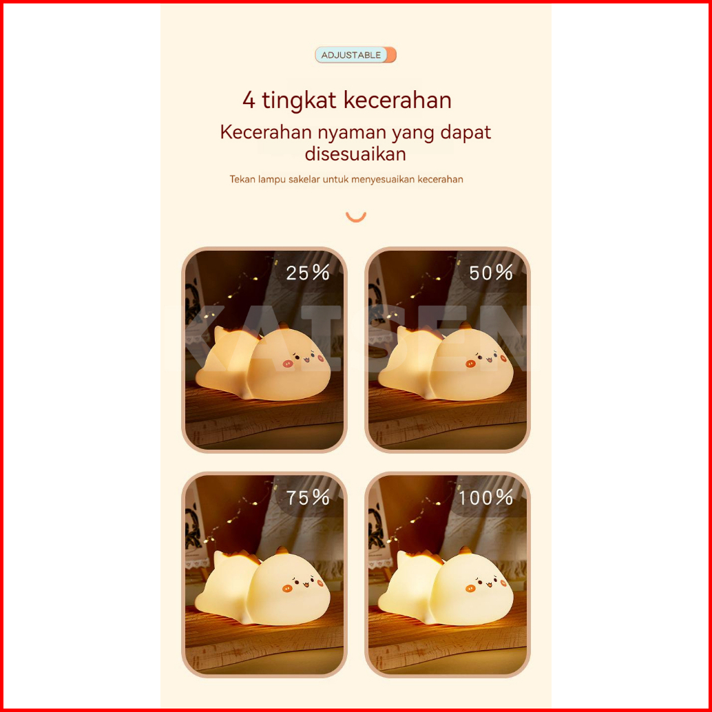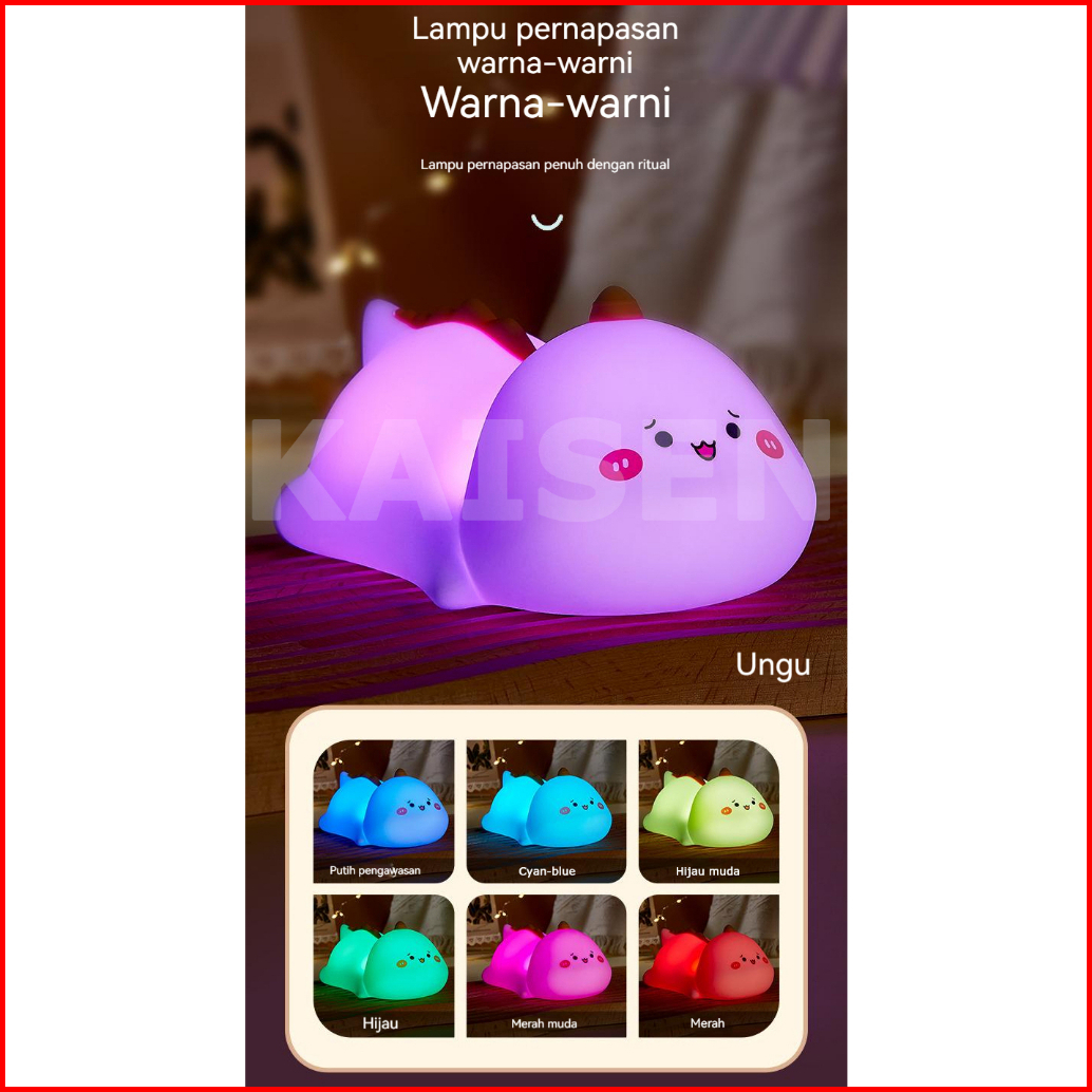Kaisen Led Lampu Malam Lucu Usb Isi Ulang Warna-warni Pat Lampu Lucu Sentuhan Hewan Silikon Lembut Dimmable