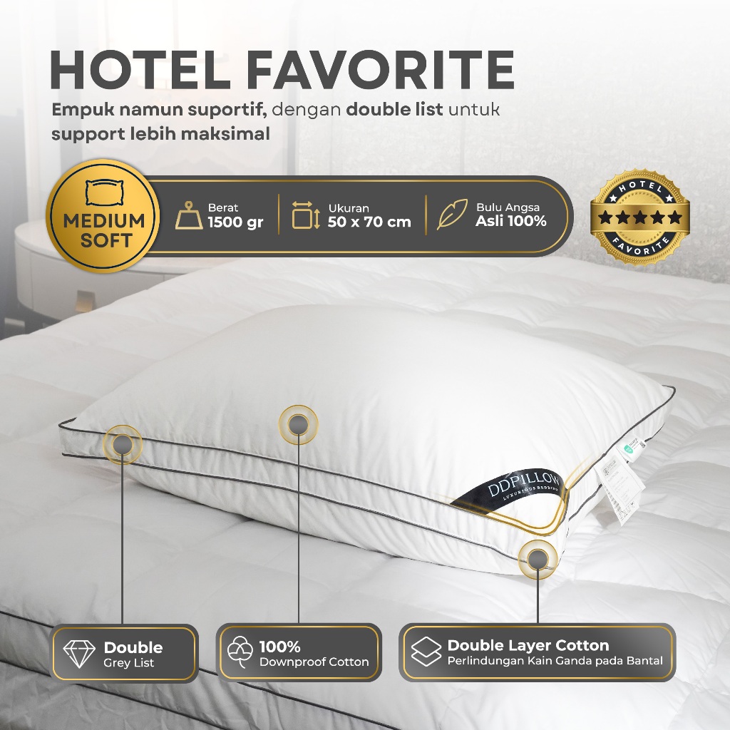 DDPillow Bantal Bulu Angsa Asli / Bantal Hotel Bintang 5, Type Riche (Medium Soft) / Bantal Tidur
