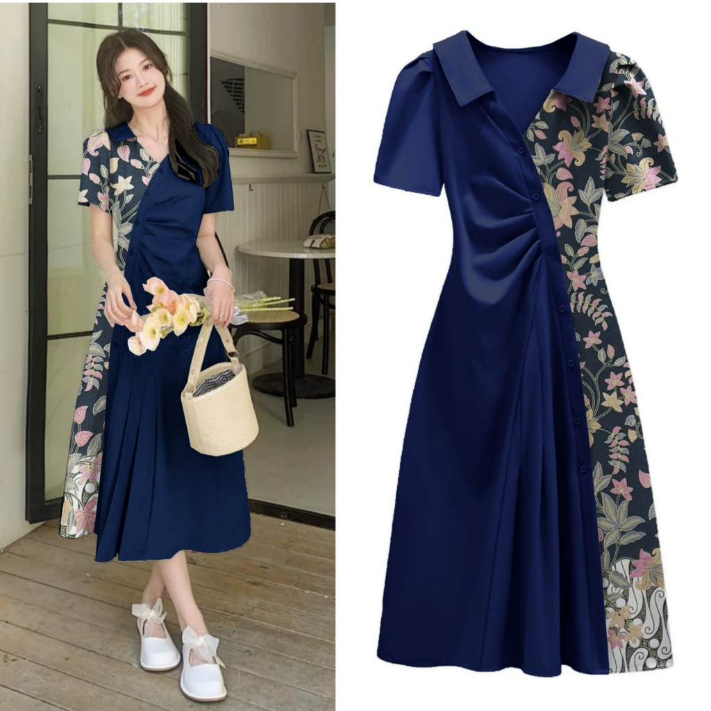 Fwg Dress Batik Wanita Kekinian Terbaru Pakaian Gaun Pesta Batik Motif Pakaian Dres Manela Kombinasi