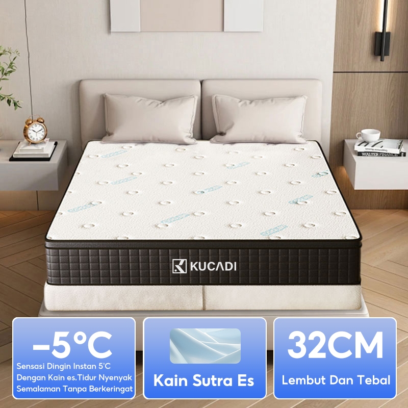 KUCADI Kasur Kompresi Kasur Kasur Pegas Independen Yang Senyap Kain Sutra Es Anti Tungau (90cm/160cm/180cm) Ketebalan 32CM